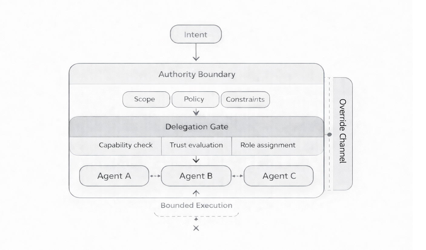 This distinction is the axis on which the entire argument turns. When systems interpret intent rather than execute scripts, the relevant engineering question is no longer “what happens next?” It becomes “who is allowed to decide what happens next?” That is an authority question, not an execution question. And it requires a different kind of architecture to answer it.